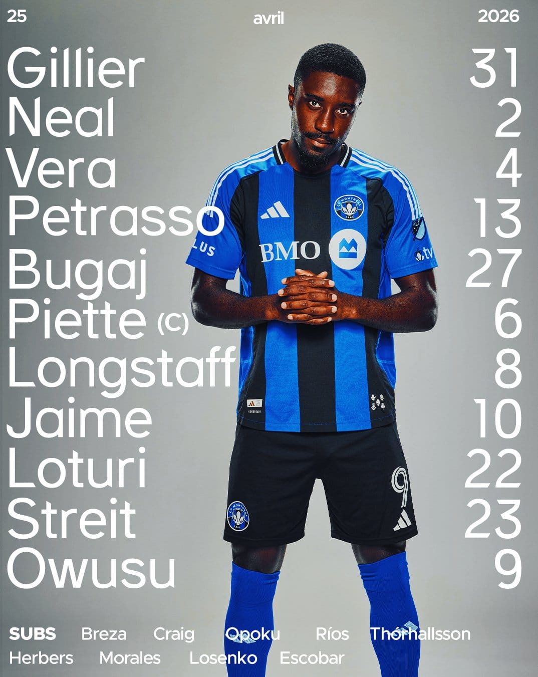 Montreal is running back the same Starting XI that beat the New York Red Bulls by a 4-1 scoreline last weekend. Of some note, neither of Wiki Carmona or Frankie Amaya made the squad as starters or subs despite not appearing on the injury report as unavailable.
