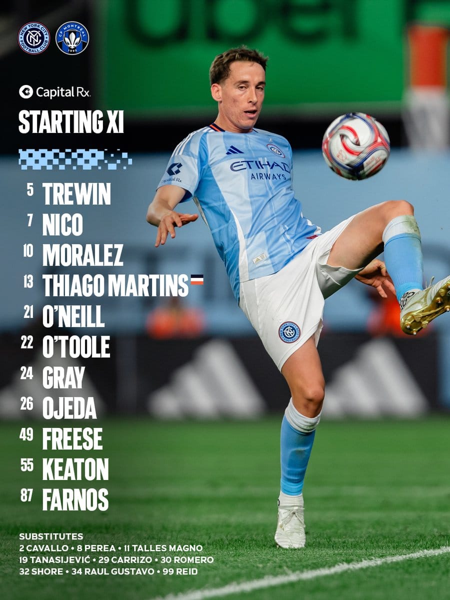 Update 1:55 pm ET: Starting XIs are out and New York City FC makes two changes from the lineup that drew Cincinnati, with Keaton Parks entering in place of Raul Gustavo (with Kai Trewin going from midfielder to central defender), and with newly-signed Arnau Farnós getting his first MLS start in place of the unavailable Hannes Wolf.